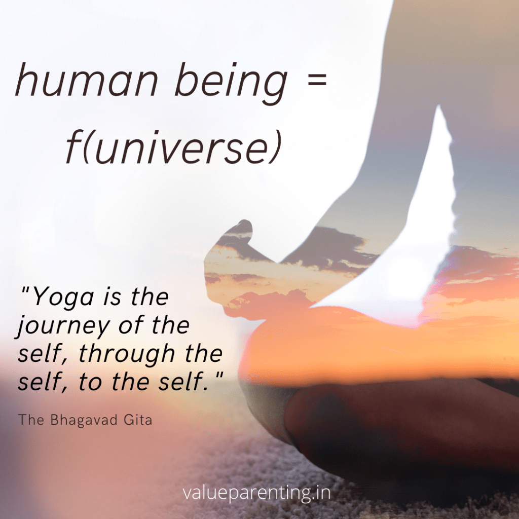 The universal principles like truth, non-injury, fairness and so on that many spiritual traditions prescribe for deliberate practice, help us be in harmony with ourselves, fellow humans and nature. Thus it helps us feel well, act well and think well; allowing us to create the inner space to take the next leap of understanding, to take in the universe. An ethical life seems to prepare us for the deep intuitive understanding that frees us from our limited-ness, narrow-mindedness, our biases, our frailties and nudges us in the direction of being whole again. It’s a journey from the illusion that ‘I am in this universe’ to the understanding that ‘The Universe is in me’.